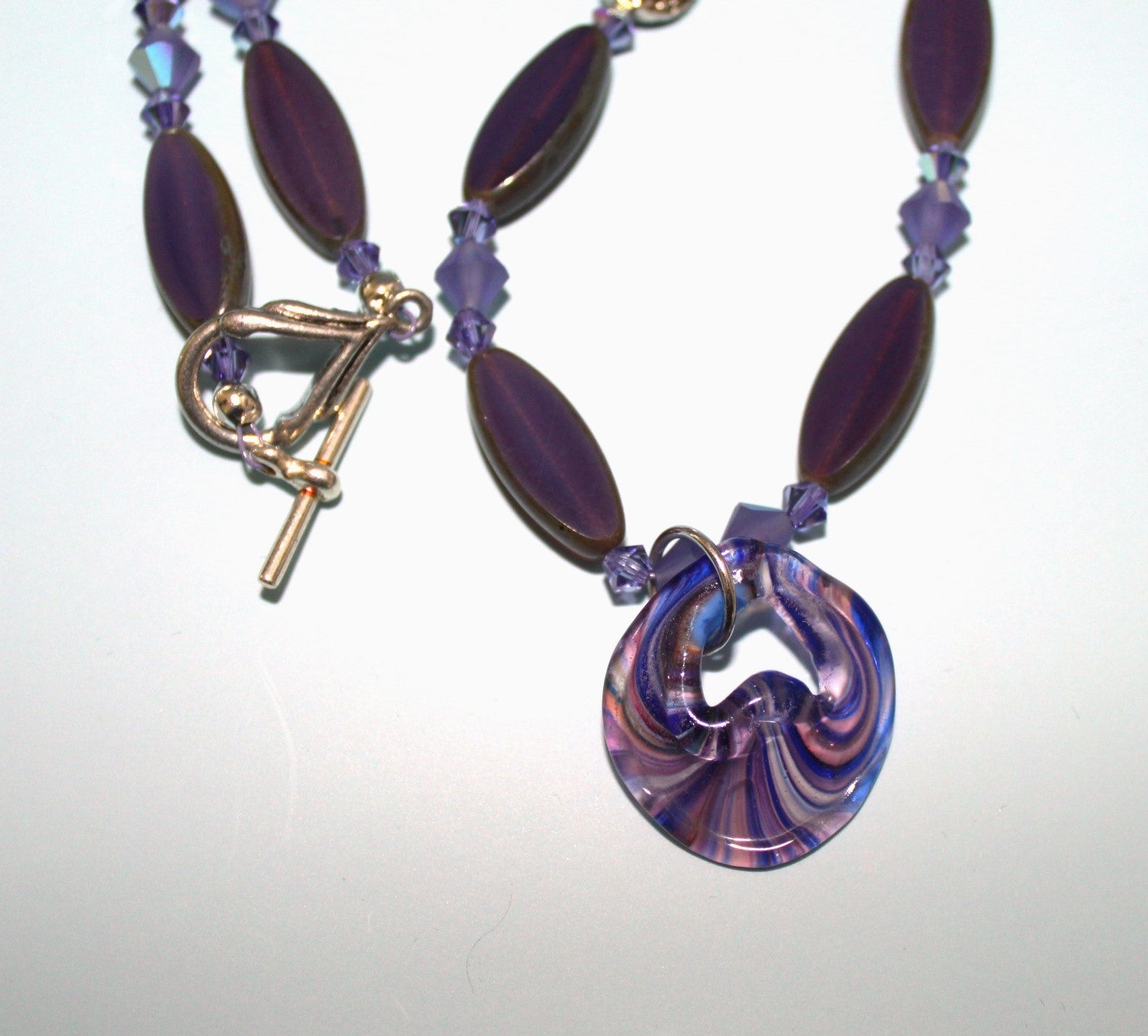 Czech Glass Purple Bead Necklace with Recycled glass pendant