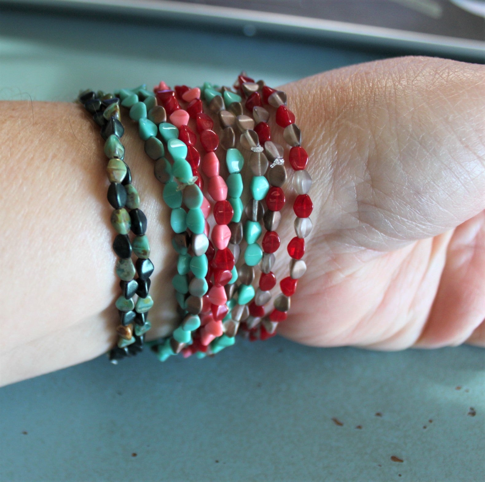 Glass Pinch Bead Wrap Bracelet