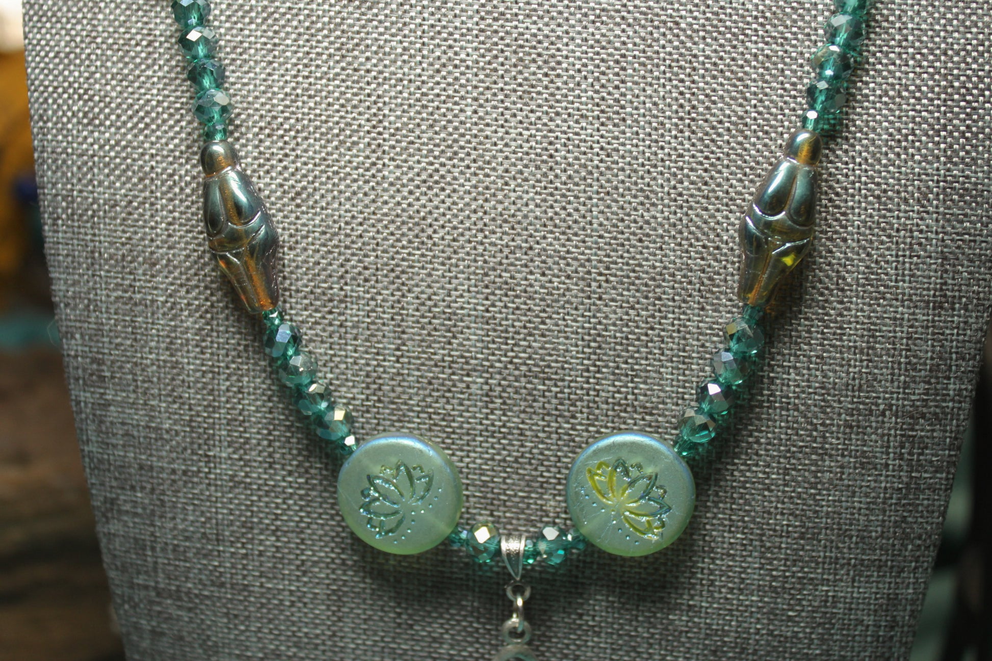 Green Lotus Flower and Goddess Necklace