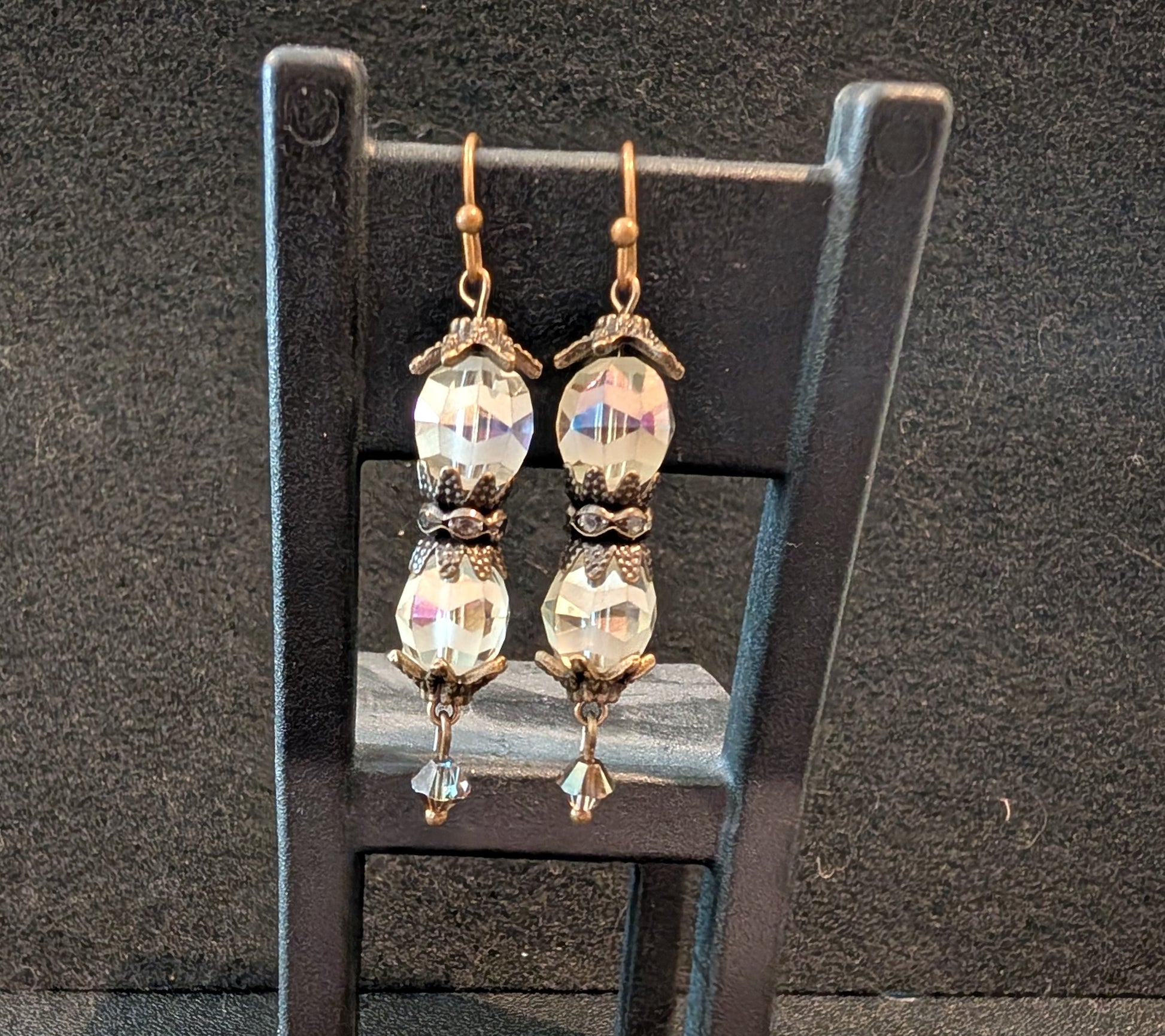 Victorian styled Light Yellow Glass Etched Bead Earrings